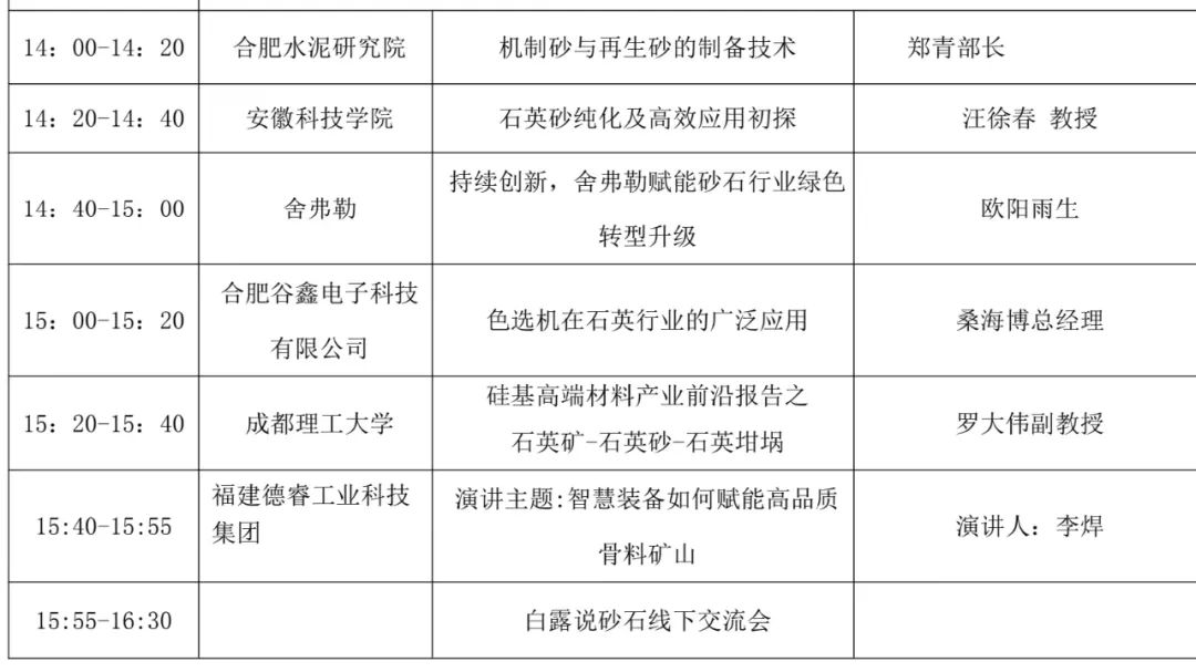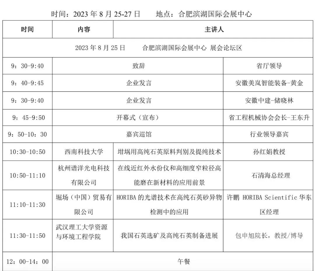 2023年安徽石英大会会议议程