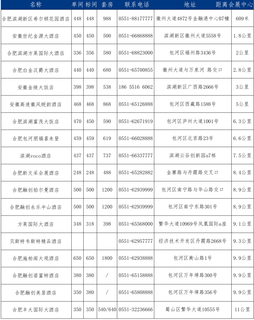 (1)合肥南站:合肥滨湖国际会展中心约7公里,10 分钟车程;
