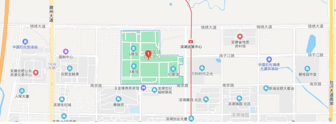 (3)南门换乘中心:合肥滨湖国际会展中心约8公里,10分钟车程;