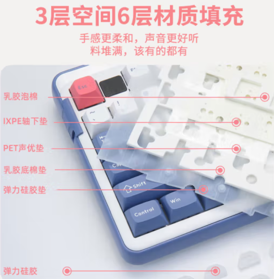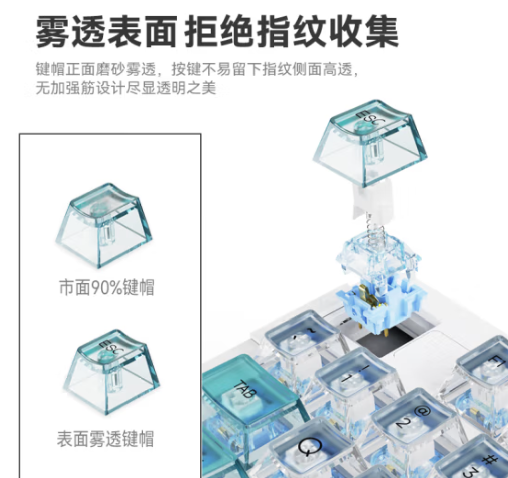 机械开关提供了轻盈的手感和声音,适合长时间打字和游戏。