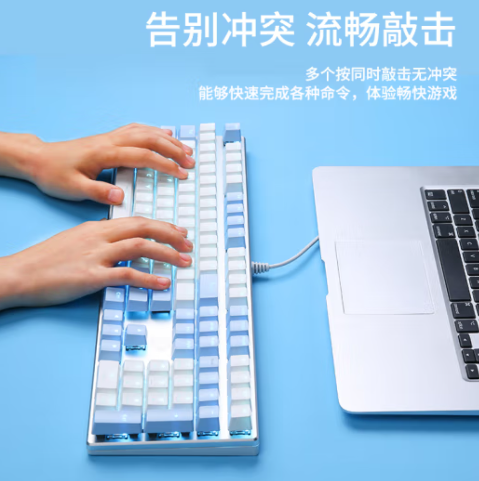 青轴机械开关带来明显的击键反馈和声音,增添了打字的乐趣。