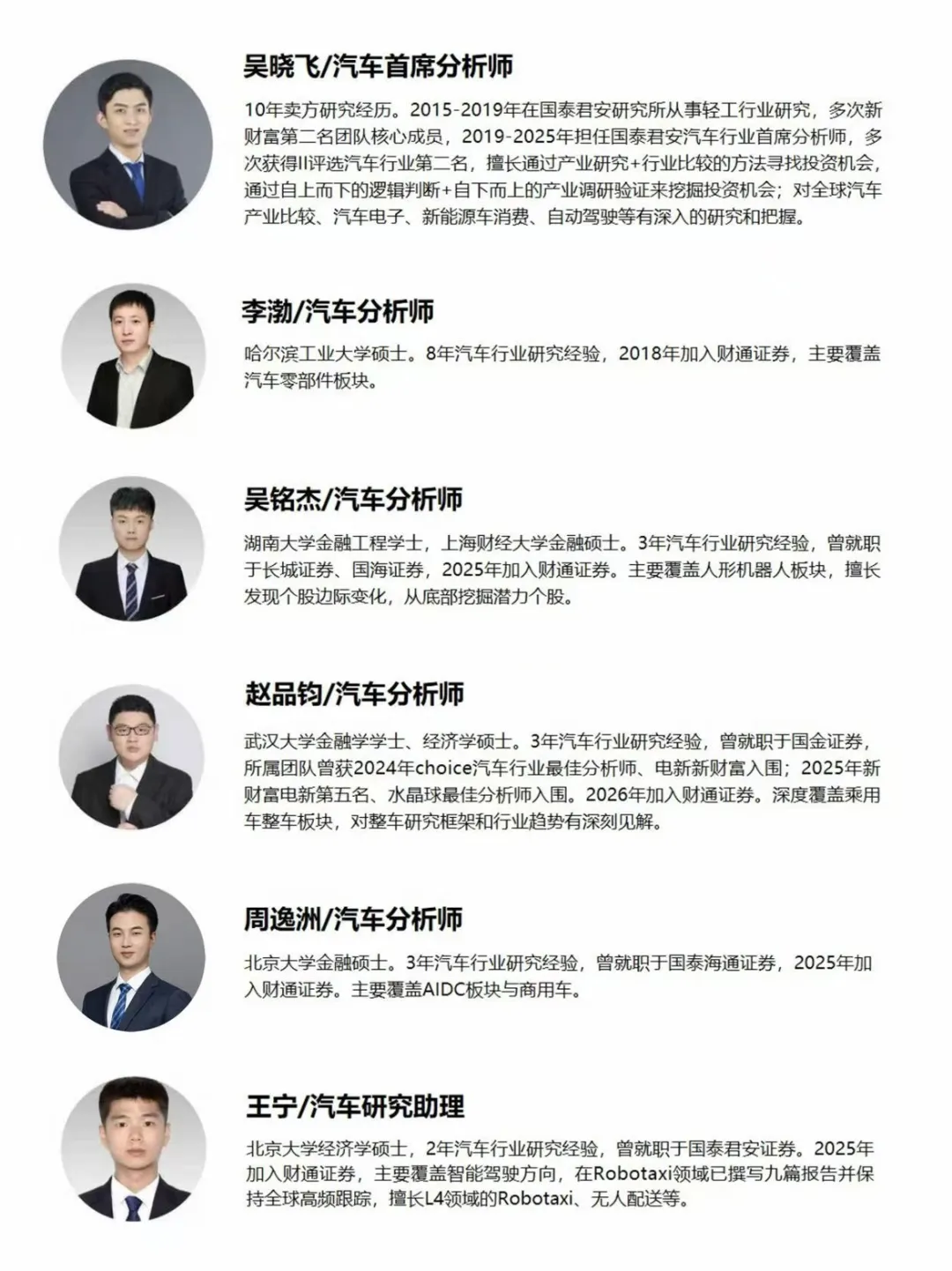 财通汽车团队成员