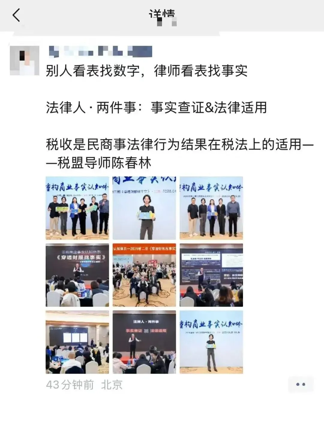 2026年4月25日-26日,为期二天的税盟《穿透财报找事实》2026年第二期课程在北京顺利举行并获得圆满成功。来自全国各地的优秀律师同仁、企业家齐聚一堂,共襄知识盛宴,助教盟员、参课盟员全程帮带,共促专业成长。