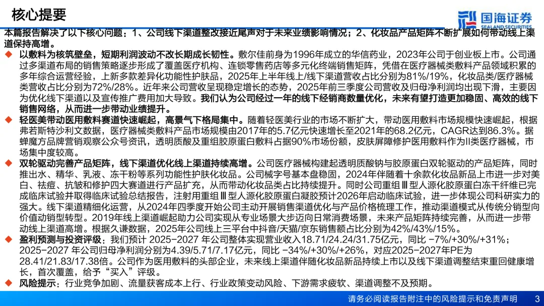 以上内容来源:《敷尔佳(301371.SZ)公司深度报告:敷料龙头渠道优化,品类升级开启增长新周期》