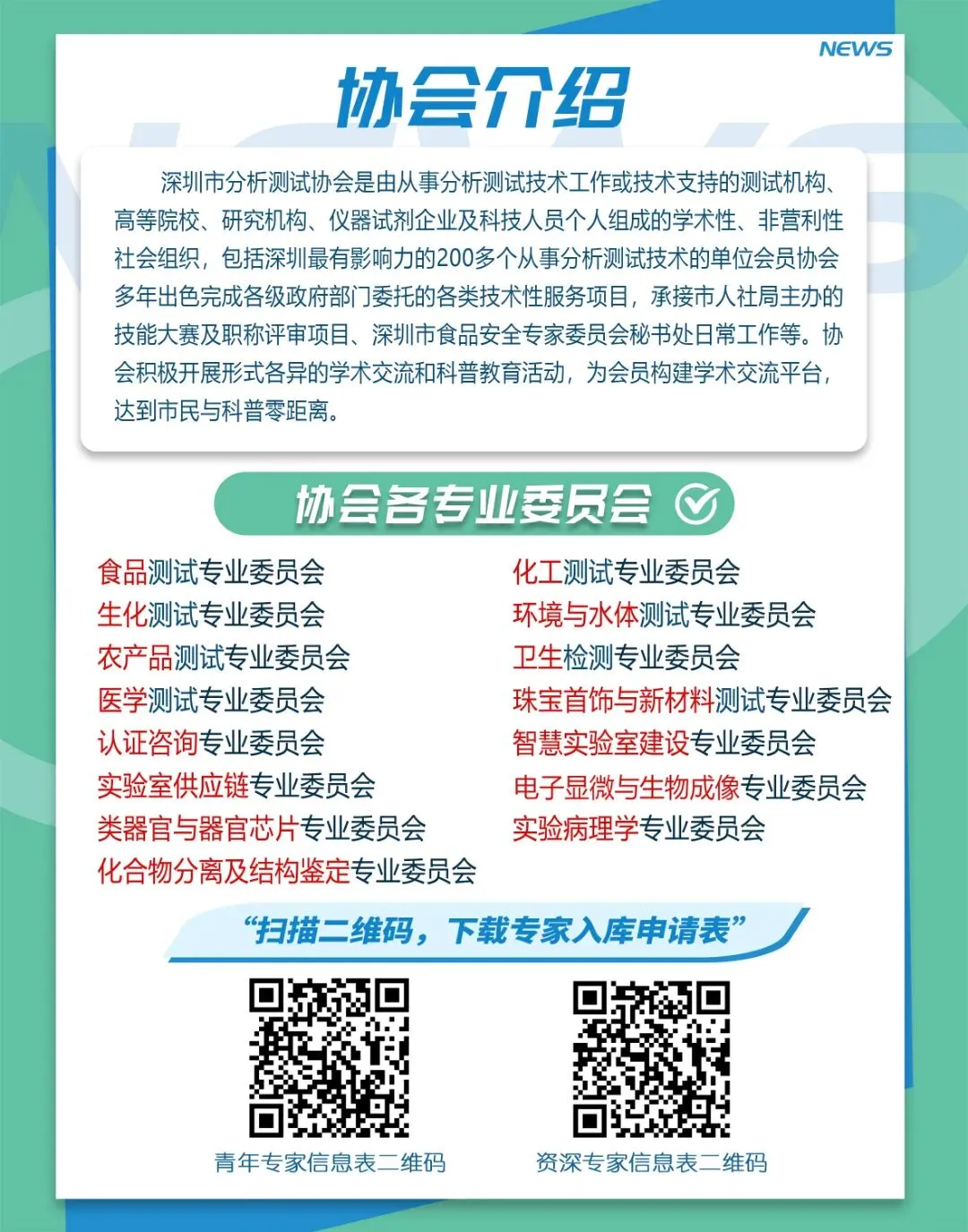 特别鸣谢:特别鸣谢:深圳市计量质量检测研究院(集团)有限责任公司实验技术服务分公司、中粤广州实验室技术有限公司、湖南沃恩环境工程有限公司、上海安谱实验科技股份有限公司、青岛盛瀚色谱技术有限公司、深圳市吉茂科学仪器有限公司、赛默飞世尔科技(中国)有限公司、深圳市嘉鸿顺实业有限公司、浙江优纳特科学仪器有限公司、广州仪器行业协会、微纯生物科技(广州)有限公司、深圳市恩科生物科技有限公司、安瑞斯(上海)科技有限公司 、坛墨质检科技股份有限公司、国耀融汇(上海)仪器服务有限公司、广州沃知仪器有限公司、杭州研一智控科技有限公司、成都科林分析技术有限公司、上海爱博才思分析仪器贸易有限公司、深圳市恒谱生科学仪器有限公司、广州格丹纳仪器有限公司、泰通科技(广州)有限公司、深圳市微纳菲生物技术有限公司 、深圳百灵生物科技有限公司、北京慧德易科技有限责任公司、海目星激光科技集团股份有限公司、天津阿尔塔科技有限公司、广东正一实验装备有限公司、深圳市泰来实业有限公司、深圳市百迈生命科学有限公司、深圳呼客仪器有限公司、深圳市田律嘉禾环保科技有限公司、广州木星科学仪器有限公司、骇思仪器科技(上海)有限公司、深圳佰生科技有限公司、睿科集团(厦门)股份有限公司、莱杰生物科技苏州有限公司、广州莱奥实验室科技有限公司、广州海纳电气设备有限公司、上海榕德新材料科技(集团)有限公司、施启乐(广州)仪器有限公司、浙江浙科仪器设备有限公司、 深圳市贝普奥生物科技有限公司、深圳逗点生物技术有限公司、广东益康生物科技有限公司 、德州天润隆实验室科技有限公司、广州谱临晟科技有限公司、北京宝德仪器有限公司、北极光科学仪器(深圳)有限公司、深圳思码特信息技术有限公司、广州得泰仪器科技有限公司、沃特世科技(上海)有限公司、苏州贝科新创生物科技有限公司、益海嘉里食品营销有限公司深圳分公司、艾维迪泰生物技术有限公司、苏州安益谱精密仪器有限公司、深圳洲斯物移动物联网技术有限公司、深圳市中卫信息技术有限公司、深圳市博诚生化试剂仪器有限公司、中元汇吉生物技术股份有限公司、深圳清华大学研究院河套分院(粤港澳大湾区(广东)国创中心国际总部)分析测试中心、深圳技术大学分析测试中心、华测医药、中山大学分析测试中心(深圳)、深圳市脑解析与脑模拟重大科技基础设施、中国检验认证集团深圳有限公司、广州金至检测技术有限公司、广东天鉴检测技术服务股份有限公司、江苏天瑞仪器股份有限公司、深圳科助宝生物科技有限公司、苇渡仪器设备(深圳)有限公司、普立泰科仪器有限公司、广州仪通兴仪器仪表有限公司、安徽皖仪科技股份有限公司、食品伙伴网、苏州毕恩思实验器材有限公司、实验室日记网、仪器信息网、分析测试学报、广州乘波体工控技术有限公司、广东科展国际展览有限公司对2026年深圳市分析测试协会年度大会的大力支持!