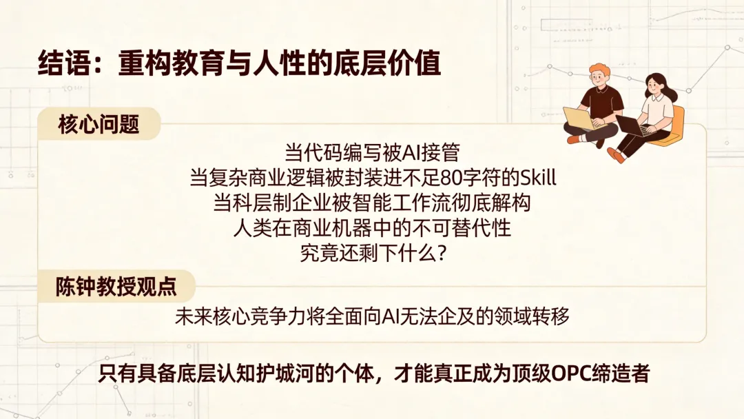 当代码的编写被AI接管,当复杂的商业逻辑被封装进不足80个字符的Skill,当科层制的企业被智能工作流彻底解构,人类在商业机器中的不可替代性究竟还剩下什么?