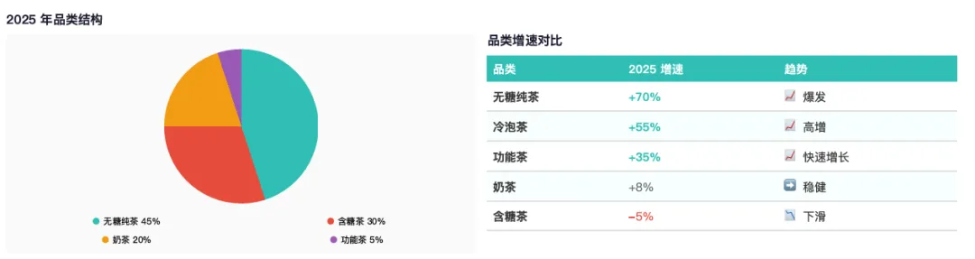 3. 无糖茶爆发:从10%到45%,占比首次超含糖茶