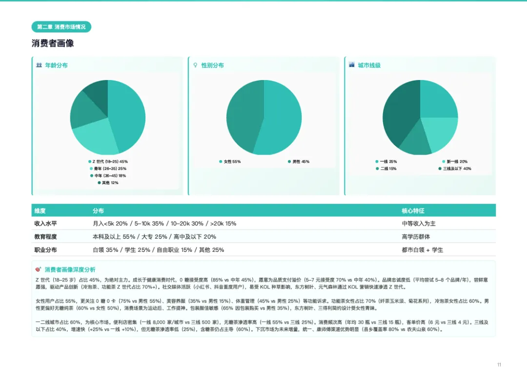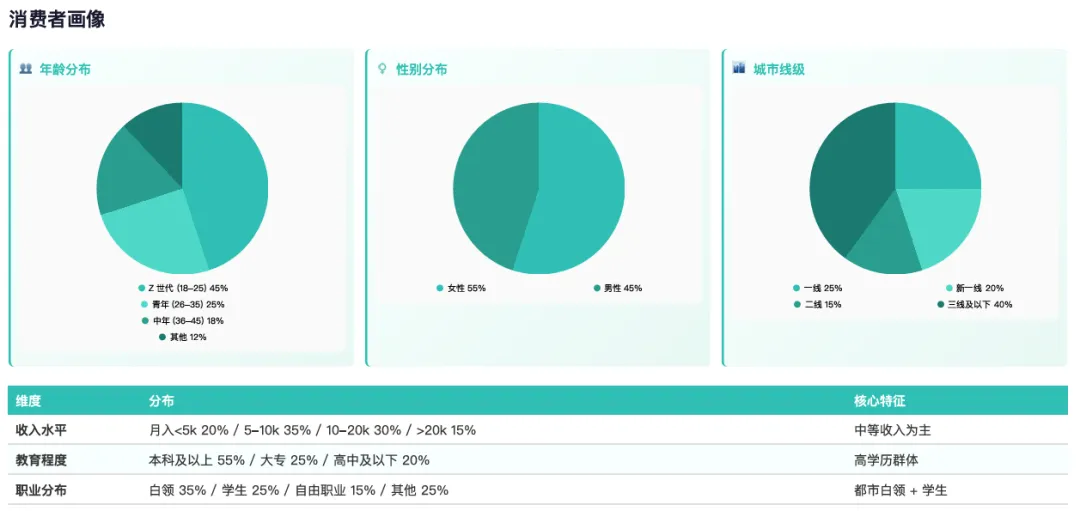 1. 消费者画像:Z世代主力,女性占比55%,一二线占60%