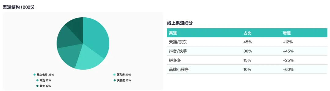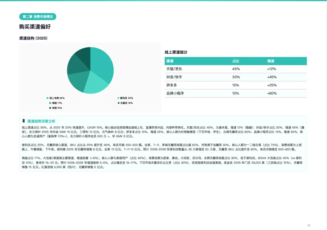 3. 渠道偏好:线上占比35%,便利店为无糖茶核心渠道