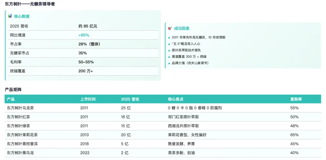 2. 农夫山泉(东方树叶):无糖茶领导者,2025年营收85亿