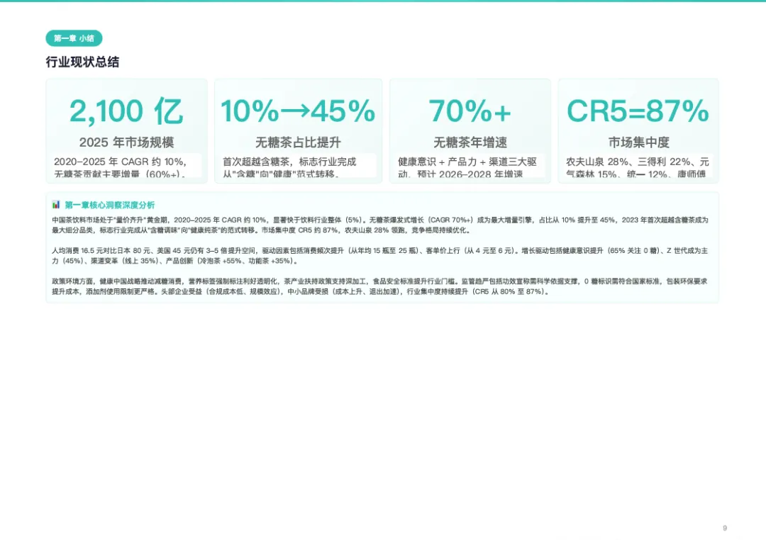 报告从行业现状、消费市场、竞争格局三个维度,系统解析了中国茶饮料行业的演进逻辑。