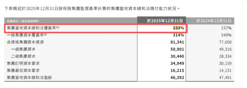 财报里有个指标叫「集团当地资本总和法覆盖率」。