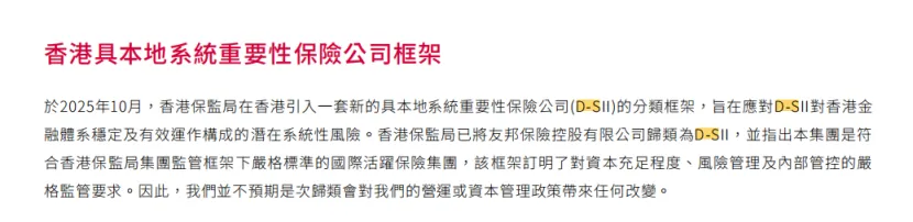 友邦成为香港保监局首批认定「大而不倒」的两家保险公司之一。