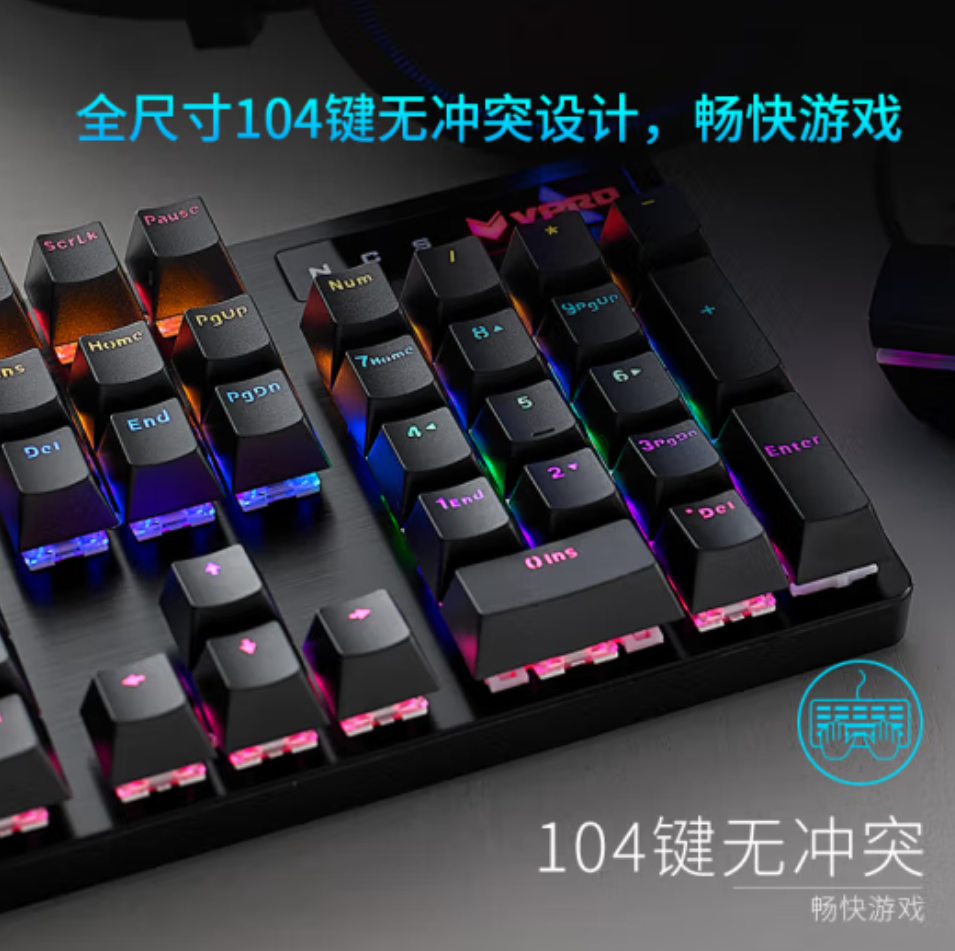键全尺寸布局,支持全键无冲,确保击键准确。
