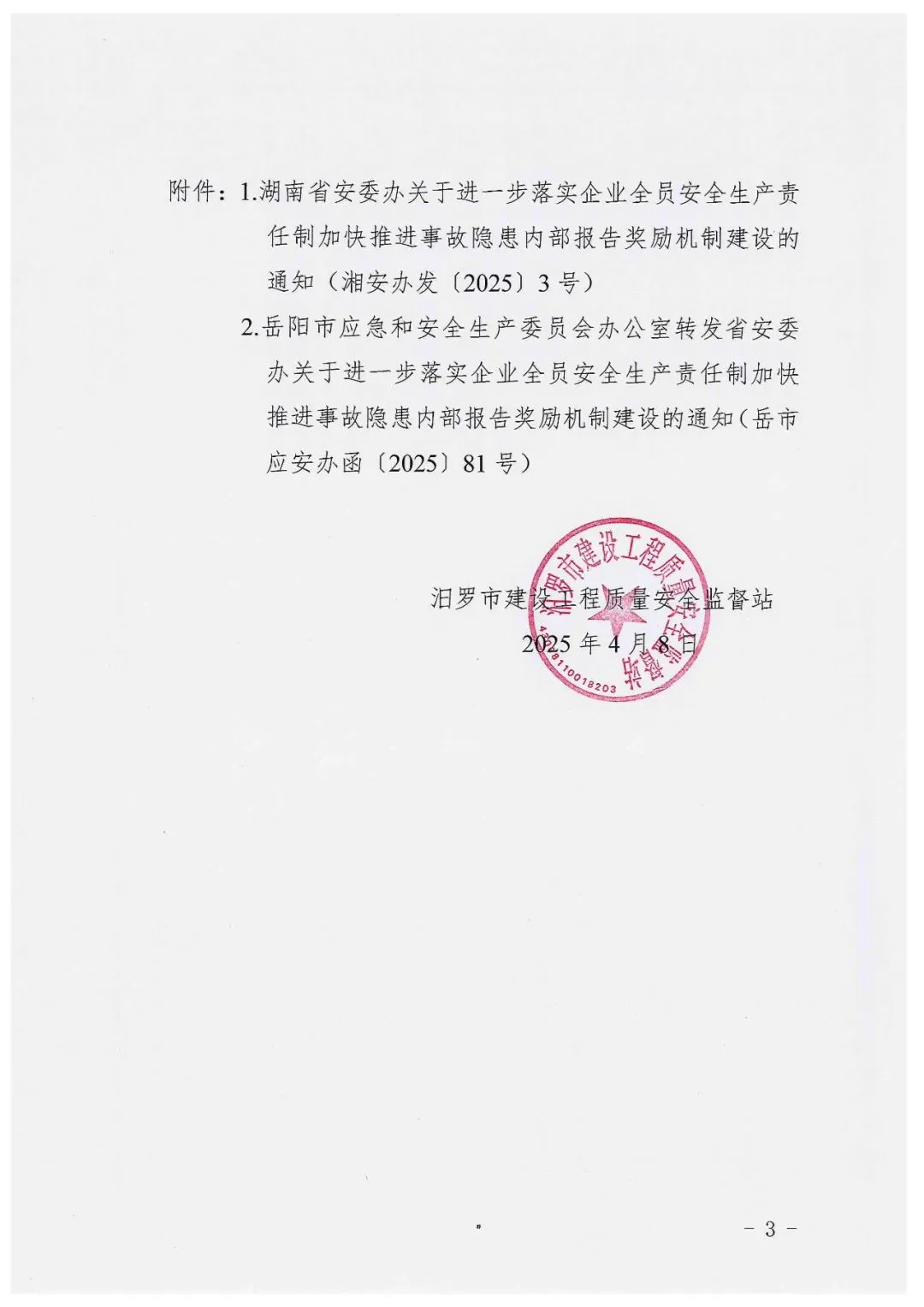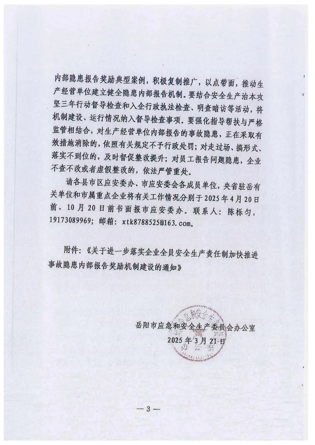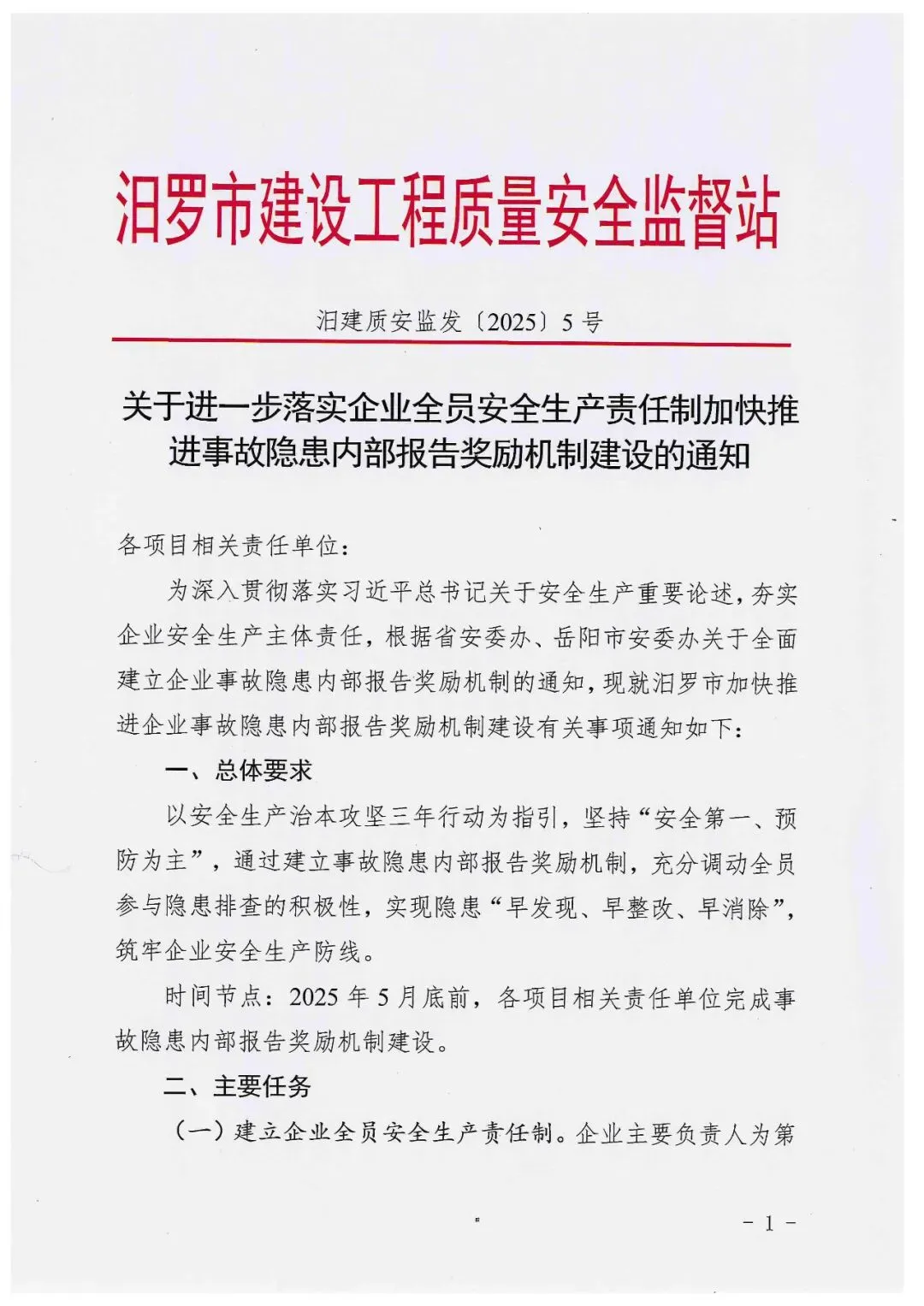 关于进一步落实企业全员安全生产责任制加快推进事故隐患内部报告奖励机制建设的通知