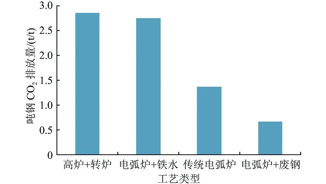 图3 不同类型钢铁工业流程CO2排放强度