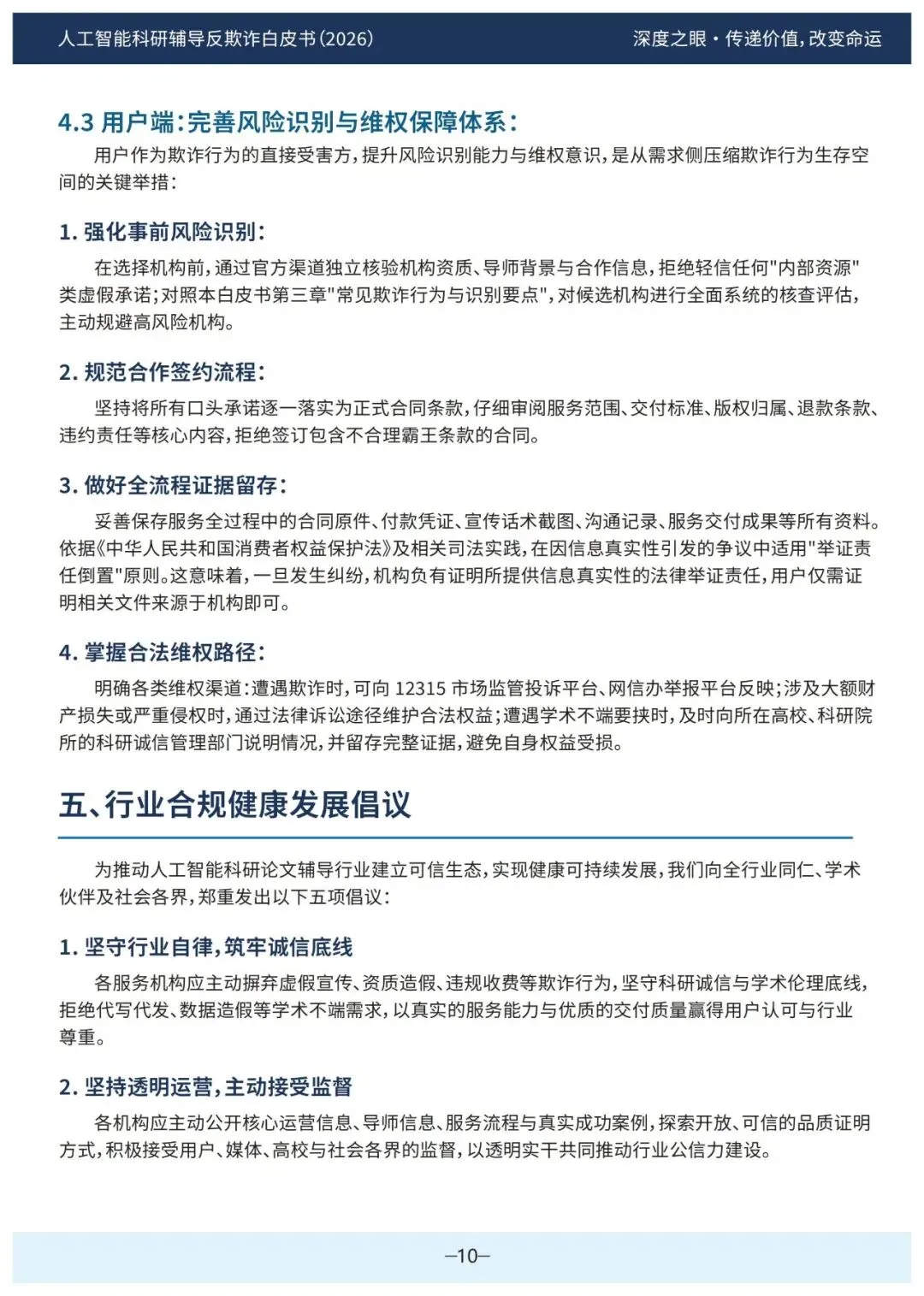 监管端需建立第三方监督与行业共治机制,包括成立诚信联盟、引入第三方审计与存证、推动政策协同与行政监管。用户端应完善风险识别与维权保障,强化事前核验、规范签约流程、全流程证据留存、掌握合法维权路径。