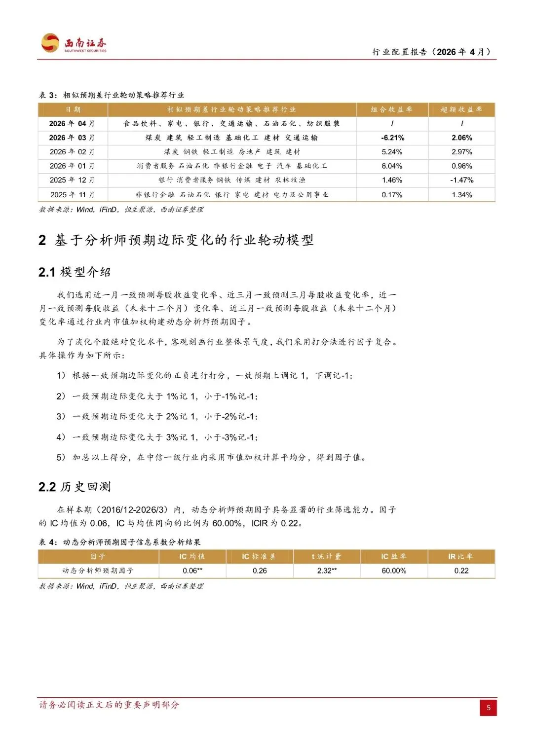 行业配置报告(2026年4月):行业配置策略定期跟踪及行业ETF组合构建-260401-西南证券-22页