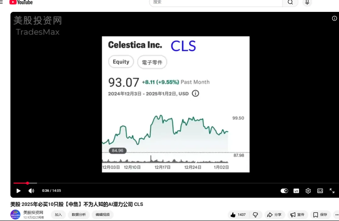 它做的是:光模块的“制造+系统集成”, AI数据中心直接受益者,它也是2025年1月美股投资网必买10只股里面的首选,当时93美元