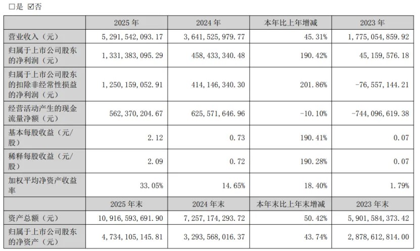 - 扣非净利润:12.50亿元,同比增长201.86%;
