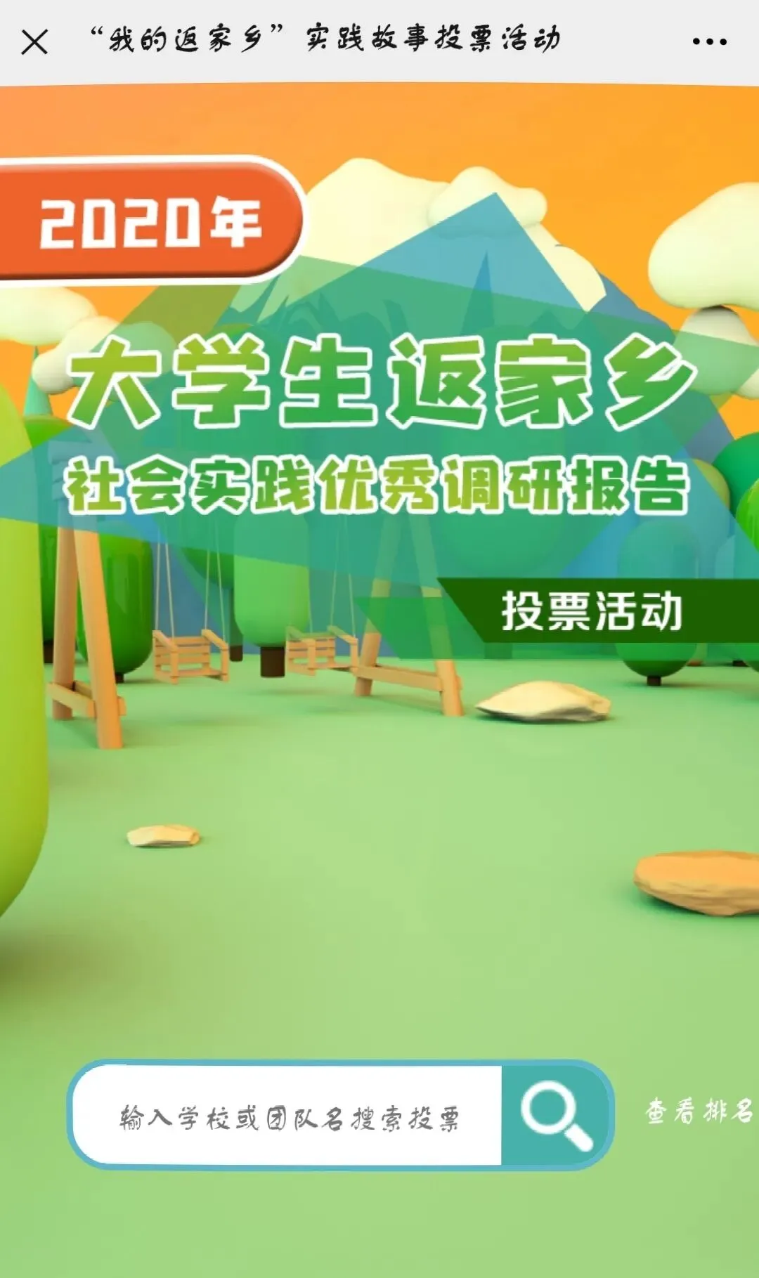 活动期间,进入团中央青年发展部“创青春”(ID:zgqncyxd)微信公众号,点击菜单栏“活动平台—投票”;或进入“青小小”(ID:zqwqxx)微信公众号,点击菜单栏“投票—优秀调研报告”,均可参与投票。