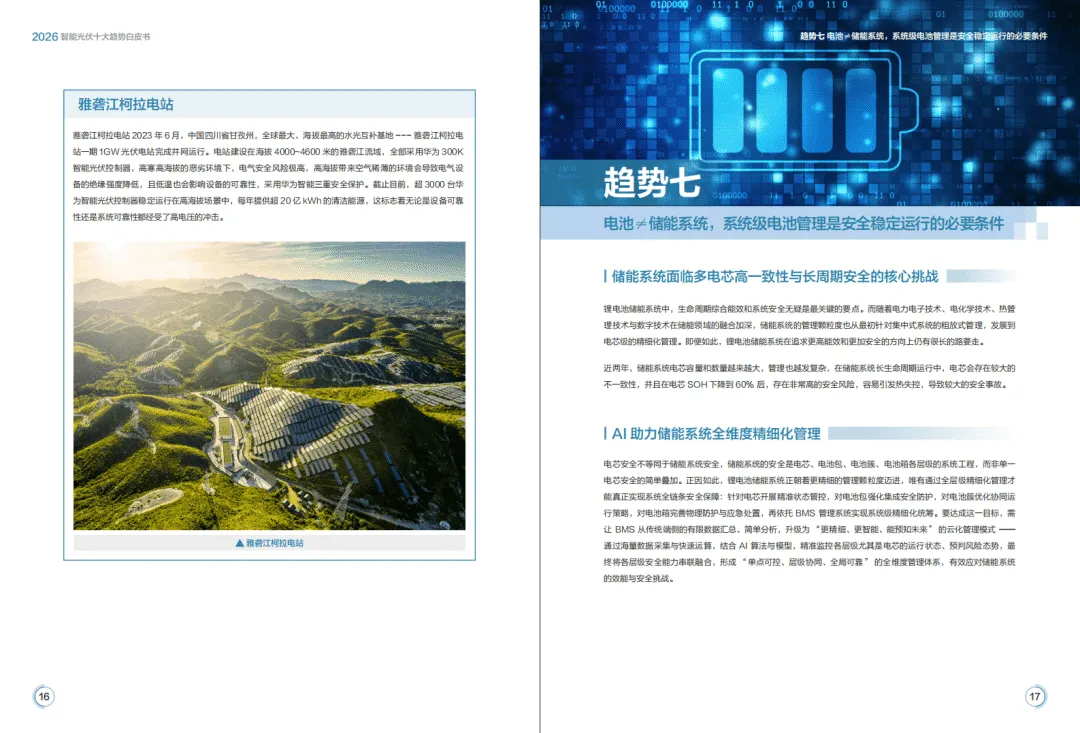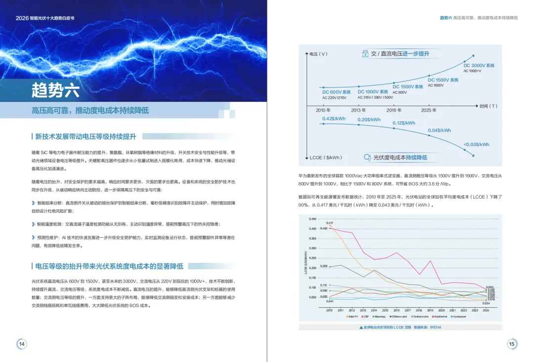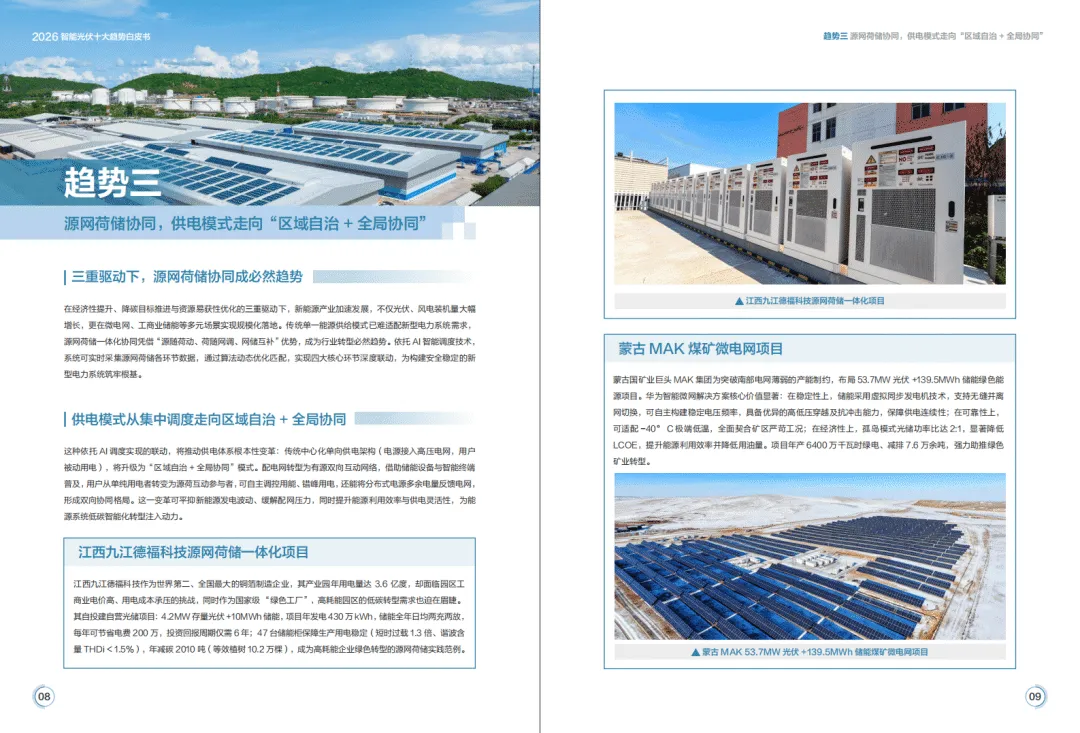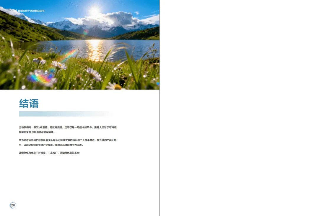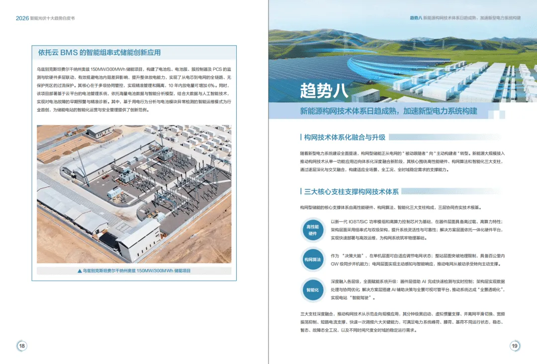 2026年全球能源转型加速,光伏与储能产业告别规模红利期,迈入价值深耕新阶段,构网技术与智能化成为核心驱动力,呈现场景融合、产业跨界、商业模式多元化特征。华为基于行业发展态势,提出由4个场景应用、6个技术应用构成的智能光伏十大趋势,推动光风储成为主力电源,助力新型电力系统构建。