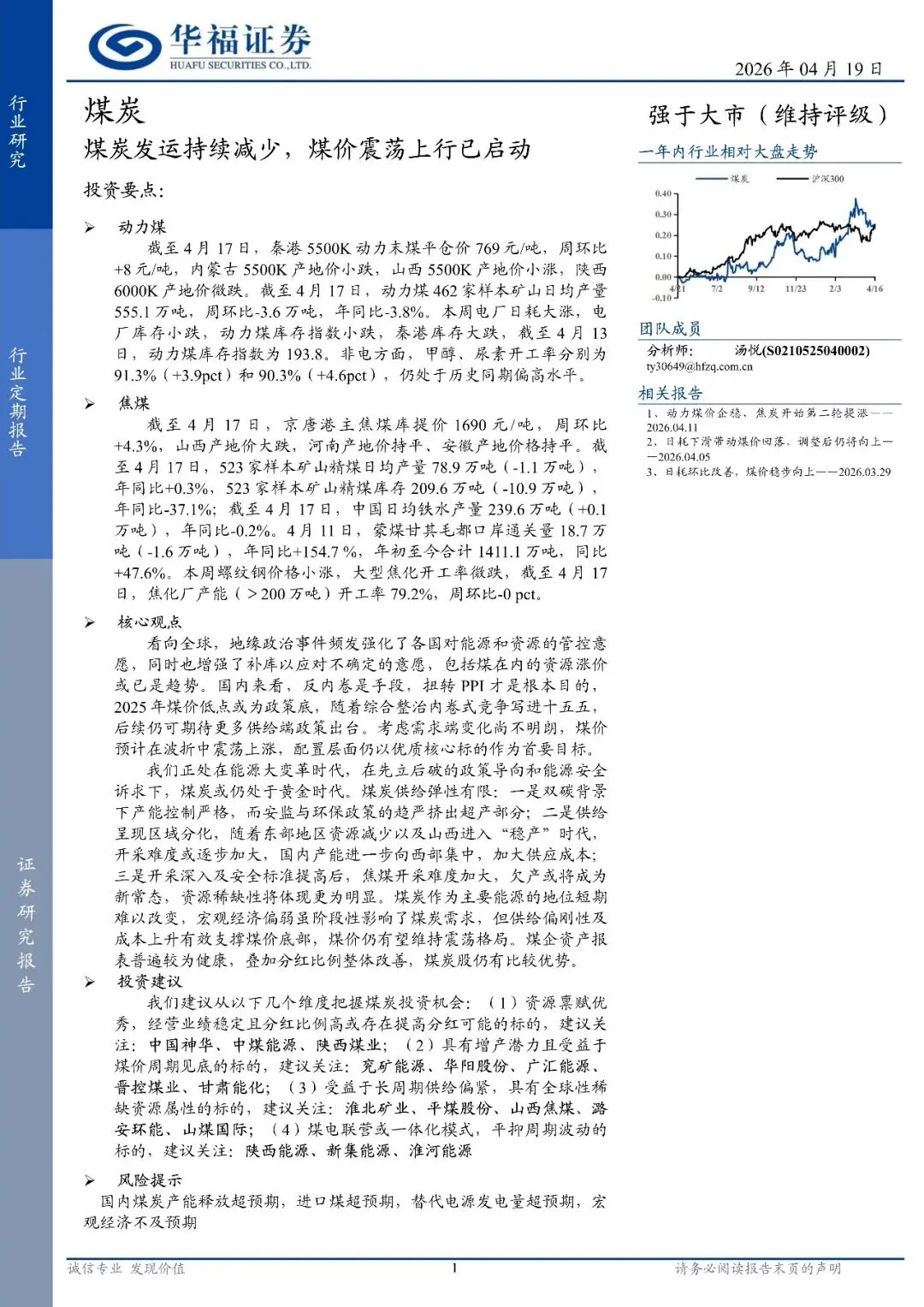 煤炭行业定期报告:煤炭发运持续减少,煤价震荡上行已启动(附下载)