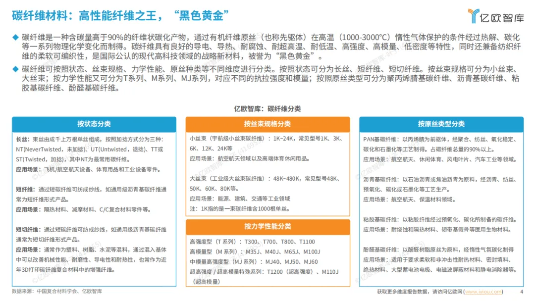 碳纤维作为含碳量超90%的战略新材料,凭借高强度、低密度、耐腐蚀等优势,被誉为“黑色黄金”,是现代高科技领域的核心材料。其以PAN基为主流,按丝束规格分为宇航级小丝束与工业级大丝束,对应航空航天、工业制造等不同应用场景,复合材料则覆盖树脂基、碳/碳基等多类,适配多元高端制造需求。