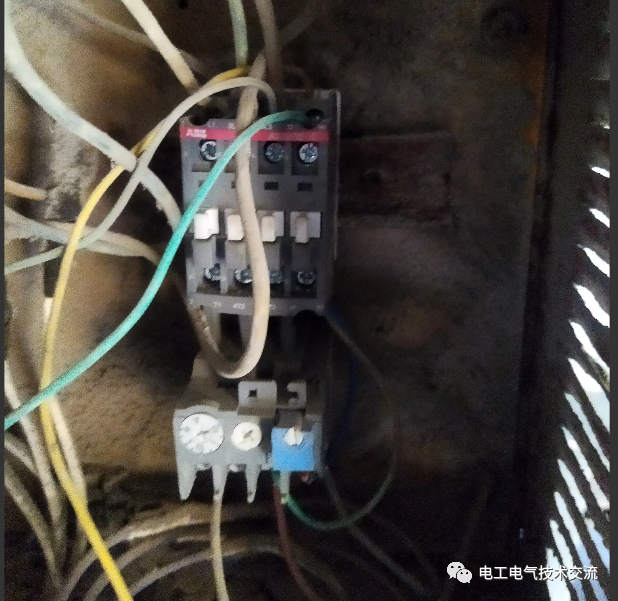 这不刚上班,岗位工人就打电话说又启动不了,过去直接测电机的三相绕组,阻值严重不平衡。欢迎关注电工电气技术交流公众号,再看接触器,触头已经烧得粘连在一起,热继电器也烧断两相。