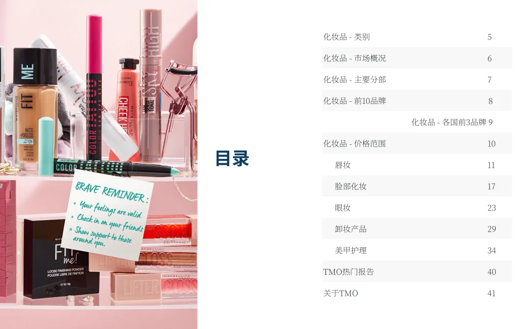 • 品类细分机会显现:眼妆市场由睫毛膏主导(占比25.4%),但“其他”类(含睫毛精华、眼部底霜)达22.3%;美甲护理中“其他”类在泰、菲、新占主流,暗示功能性与创新产品存在蓝海空间。