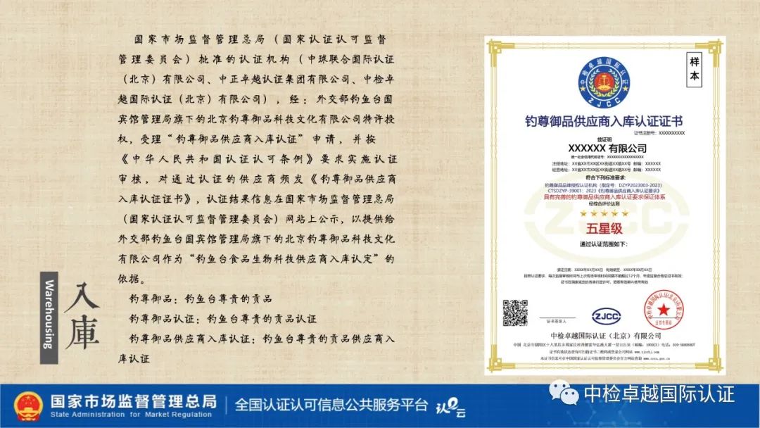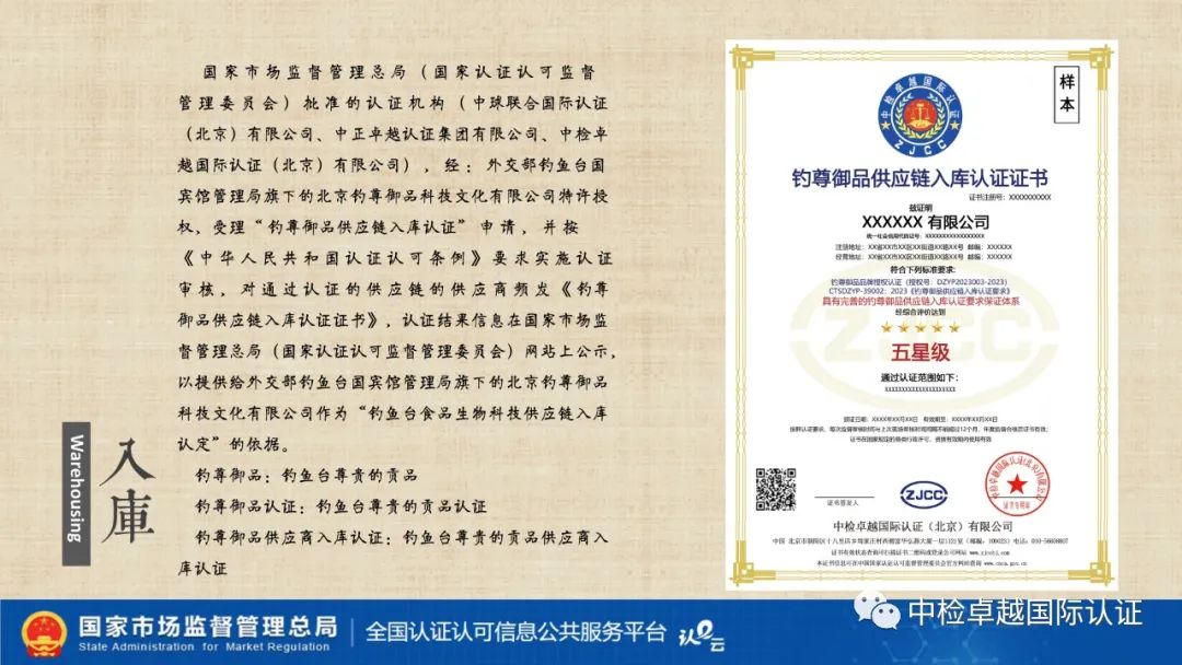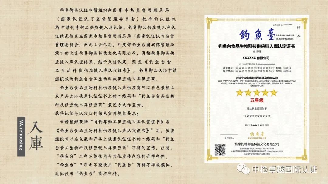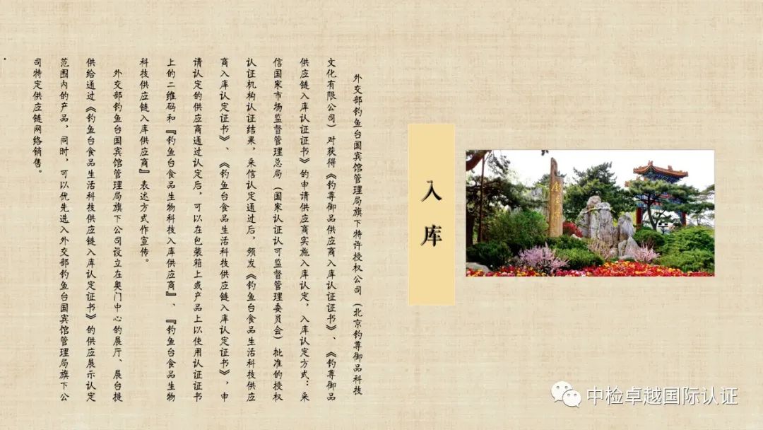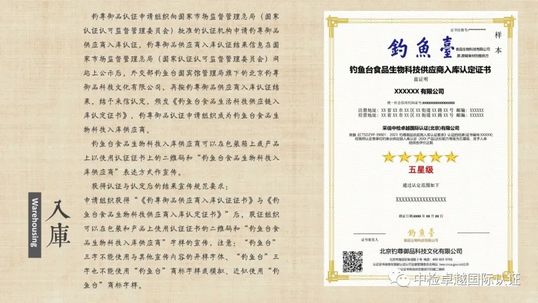 外交部钓鱼台国宾馆管理局旗下 钓鱼台食品生物科技供应商入库、供应链入库、钓鱼台商号及商标联名认证与认定