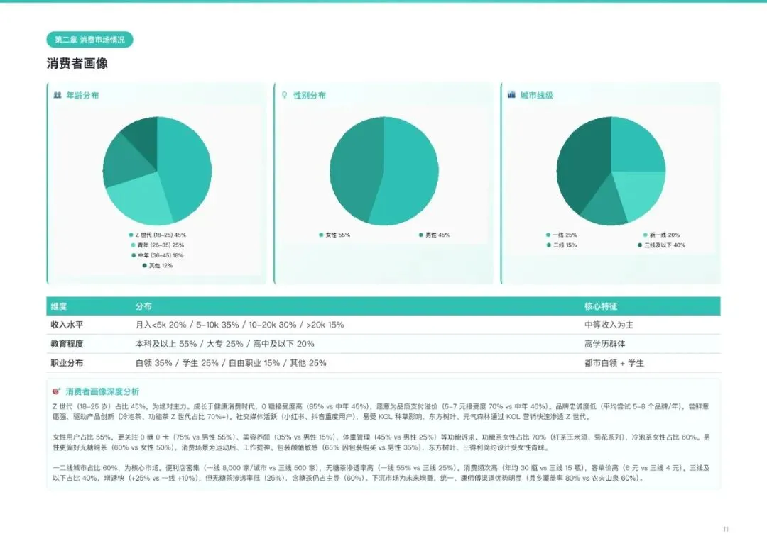 核心用户画像清晰:Z世代占比45%,是消费主力。他们成长于健康消费时代,对零糖产品接受度高达85%,愿意为品质支付5-7元的溢价,且品牌忠诚度低,乐于尝鲜。