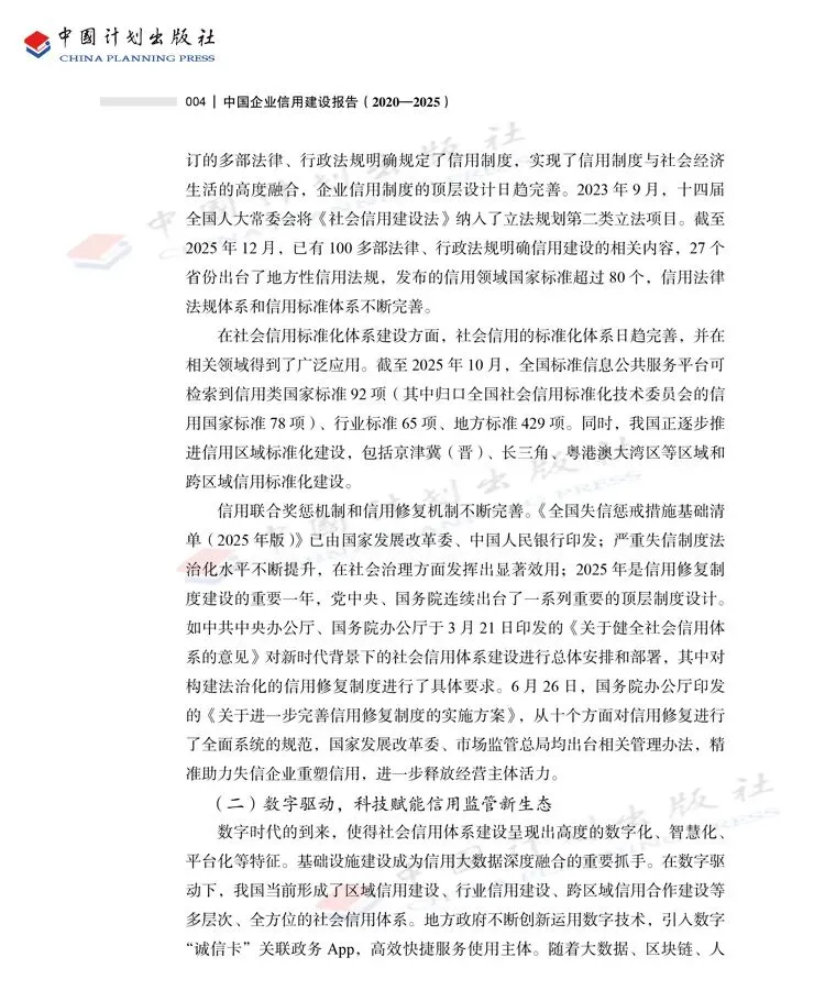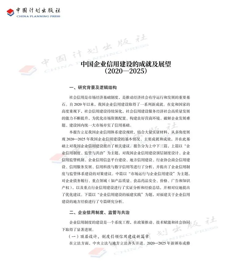 总报告:对 2020—2025 年我国企业信用建设情况进行了宏观性的考察和分析。
