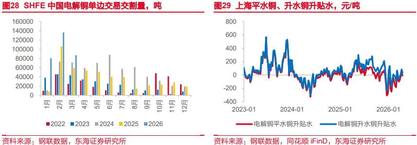 2026年4月24日当周,电解铜现货库存为27.71万吨,较上周环下降12%,同比上升42%,铜精矿港口库存约为47.1万吨,环比上升19%。当周电解铜现货库存下降,主要因国内消费旺季刚需集中释放、新能源与电力行业提货强劲,叠加冶炼厂检修增多导致精炼铜产出受限、进口资源流入放缓,同时贸易商积极去库、现货升水走强刺激交投,保税区与交易所库存同步去化,整体现货库存呈现阶段性下降态势。