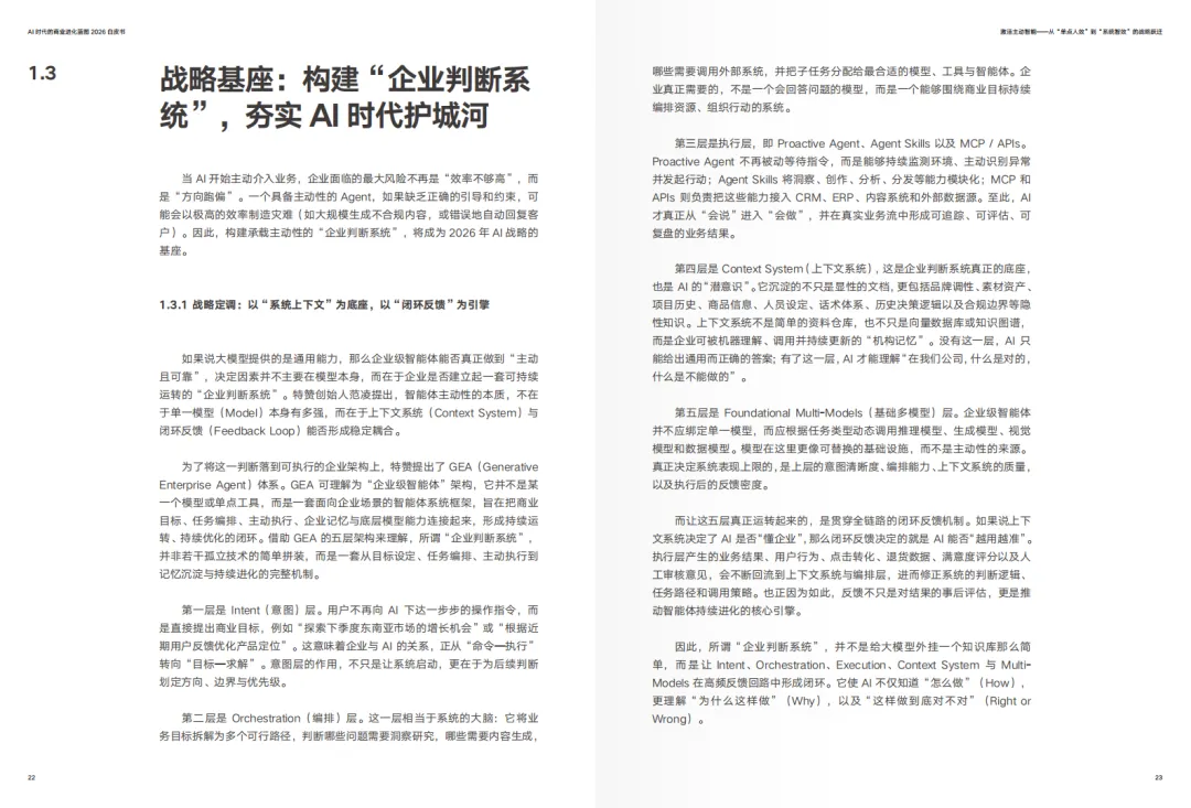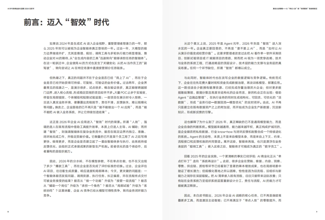 AI时代的商业进化蓝图2026白皮书:激活主动智能 从'单点人效'到'系统智效'的战略跃迁
