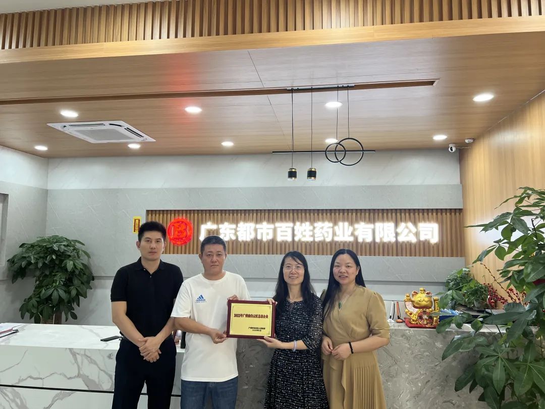 2023年8月24日上午,嘉禾街党工委张丹莉书记,在社建办负责人胡慧发的陪同下,亲临都市百姓颁发“2022年广州市白云区总部企业”的牌匾到黄木壮董事长、叶会珍总经理手中。
