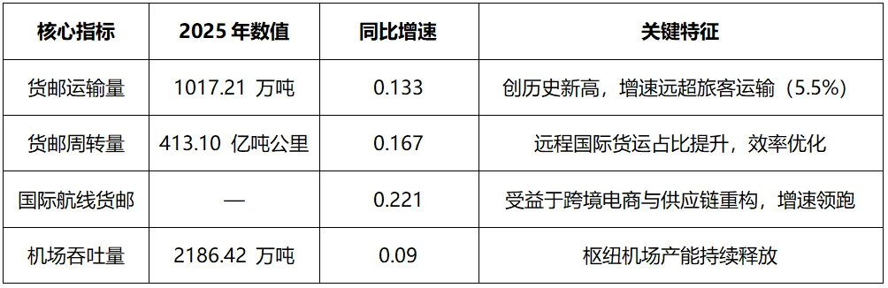 2025年全行业货邮运输量突破千万吨大关,国际航线增速显著高于国内,成为拉动增长的主引擎。
