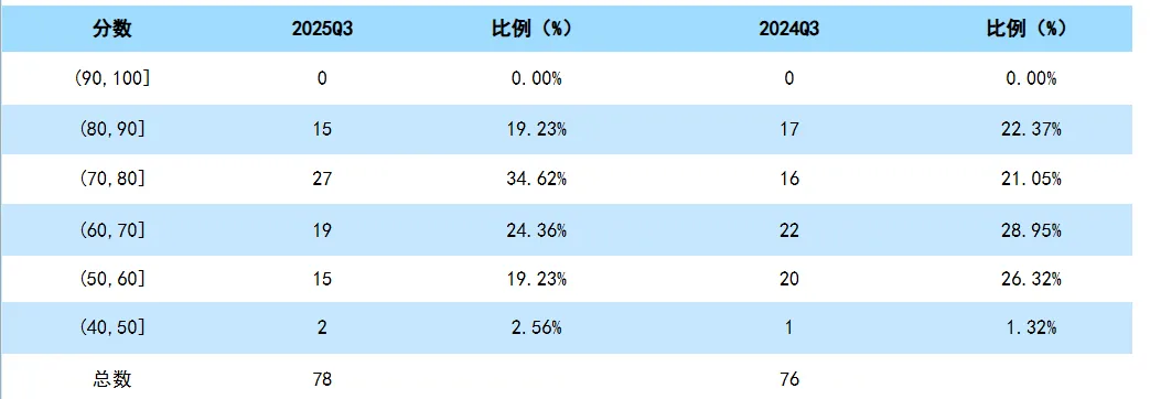 | 综合财务实力分布是指本行业内各综合财务实力指数的分布和离散程度,反映了同行业内不同公司综合财务实力的差异情况, 其中离散程度由标准差和极差统计指标展示,该指标数据越大说明该行业财务实力分布越离散,各公司之间的财务实力悬殊越大。 |