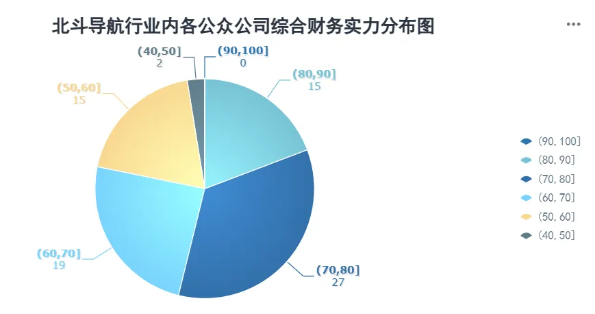 北斗导航行业所有公众公司综合财务实力统计均值为69.94, 极差值为45.37,标准差10.73。