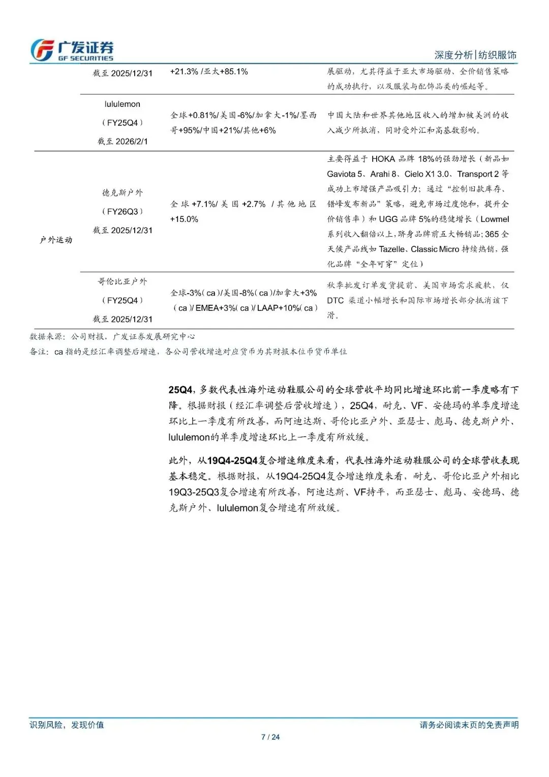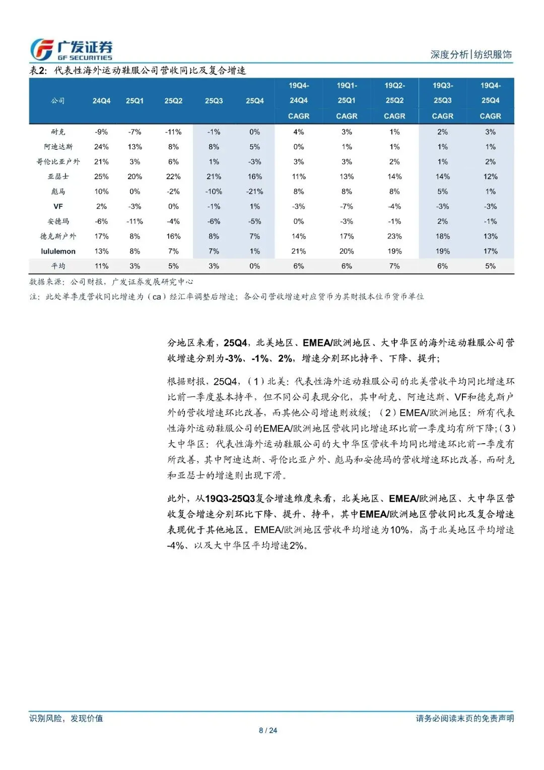 海外运动鞋服行业25Q4财报总结:25Q4整体营收增速略有放缓,盈利能力表现分化-260424-广发证券-24页
