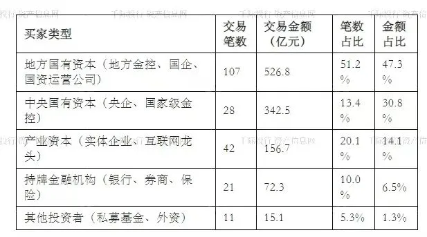 剔除 8 笔国有无偿划转交易后,209 笔市场化交易的买家结构如下: