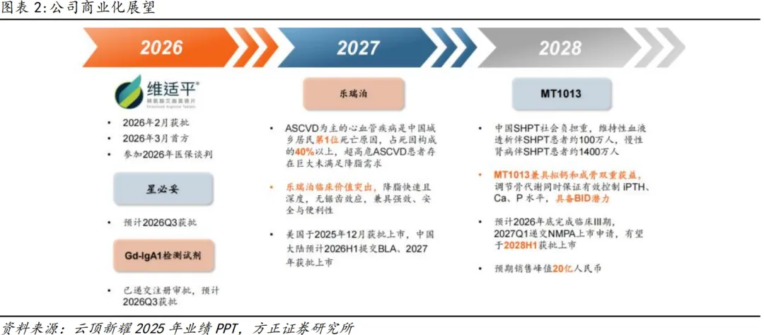 商业化成果显著,2025年营收大幅增长。公司2025年实现收入17.07亿元,大幅增长142%。公司国际财务准则下亏损大幅收窄71%,非国际财务准则下首度实现扭亏为盈人民币1.87亿元,整体经营质量稳步提升。商业化方面,耐赋康全年销售收入突破14亿元,同比增长超过300%,依嘉实现2.62亿元,院内销售同比增长44%。2026年2月,维适平获批治疗溃疡性结肠炎,计划于2026年下半年参加国家医保谈判,有望成为下一个重磅大单品。截至2025年12月31日,公司现金储备充裕,达人民币27.31亿元,有力支撑商业化拓展、自主研发及中长期战略布局。