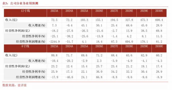 12寸线盈利趋势中等偏上。该业务盈利趋势预计呈现“短期承压,中期改善可期”的格局,改善预期主要基于两大驱动力:一方面,计划注入的体外资产是已过折旧高峰期的优质盈利资产,并表后将直接大幅增厚公司利润;另一方面,新建产能持续爬坡放量,规模效应有望逐步显现,驱动盈利能力进入改善通道。