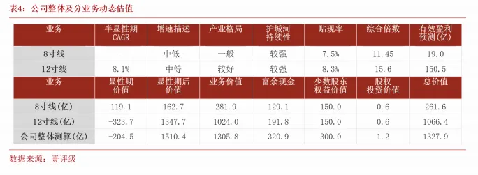 公司的晶圆代工业务包括:12寸线、8寸线,我们分业务进行盈利预测并估值。各业务的预测核心假设及逻辑如下: