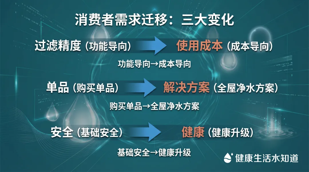 消费者不再只问"这台机器能过滤多干净",而是开始问"滤芯多久换一次,每次多少钱"。