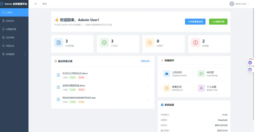 合同管理平台开源!完全免费,适合中小企业,智能化问答、专业化报告生成于一体的 AI 法律服务平台