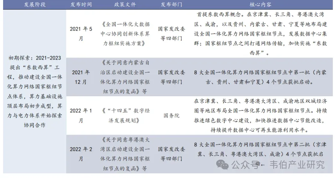 1、初期探索阶段(2021-2023年):算力网络完成空间布局,算电协同完成前期政策铺垫
