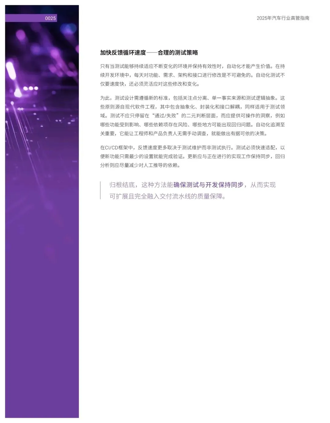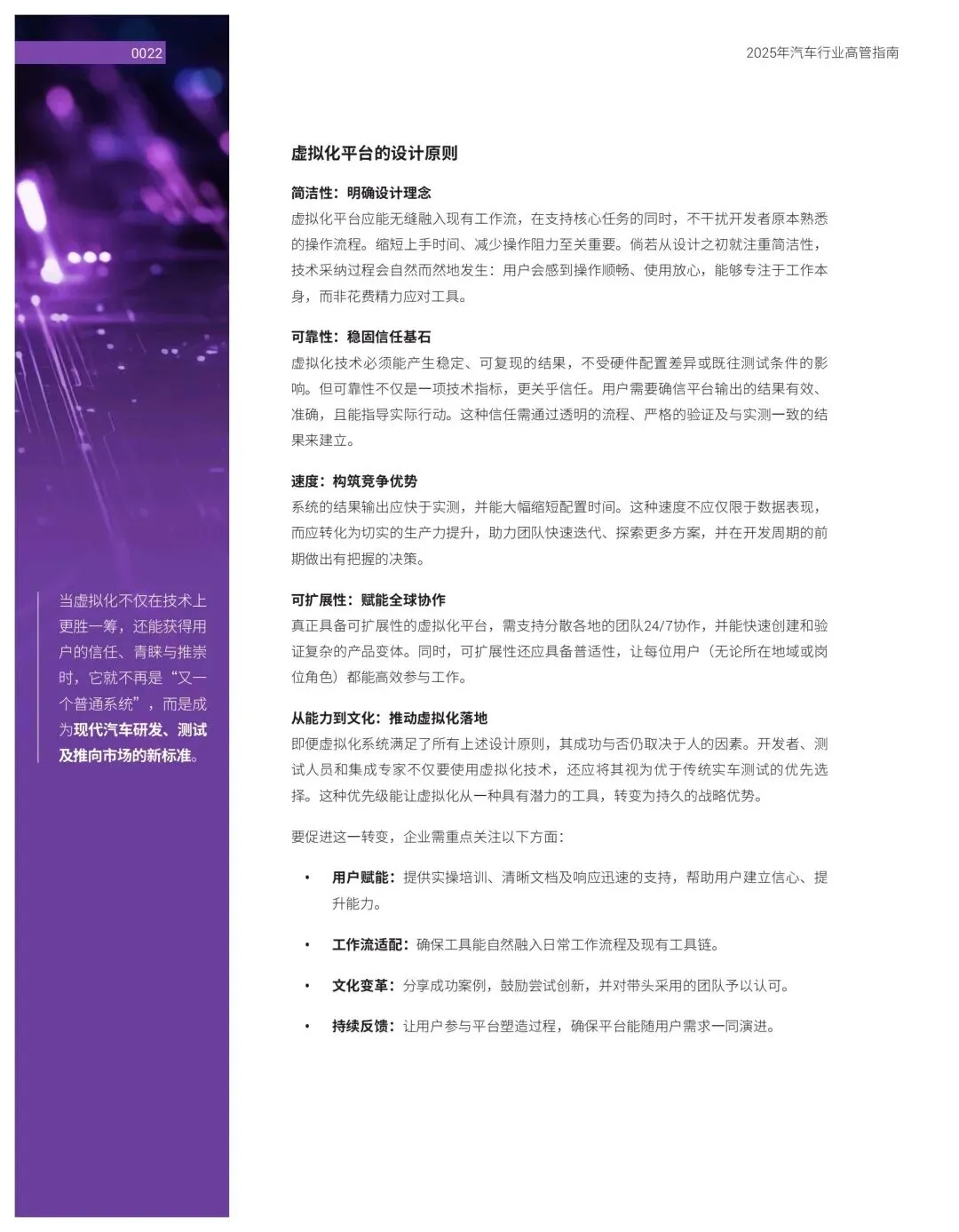 落地不是买个工具就完了。高管指南里点得很透:虚拟化必须融入标准开发流,不是专家专属;平台得简洁、可靠、快、可全球扩展;文化上要让工程师信虚拟环境不比实车差。还要云原生、单一事实来源,虚拟软件制品先于硬件交付。测试策略必须模块化、可追溯,能跟上每日变更。