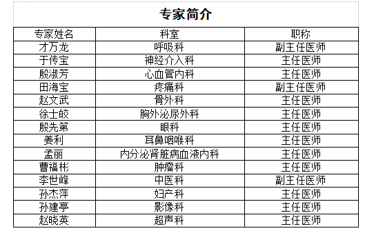 为提高医院的医疗水平,满足就医需求,为基层群众提供更为便捷、优质、高效的卫生健康服务,解决广大患者去上级医院看病难、看病贵的问题,北大荒集团牡丹江医院闫海鹏院长带领14个科室科主任组建“优质医疗服务专家团”到八五四农场医院,坐诊、查房、培训、指导,真正让患者在家门口就能享受到三级医院专家的服务。现将北大荒集团牡丹江医院帮扶专家相关信息简要介绍如下: