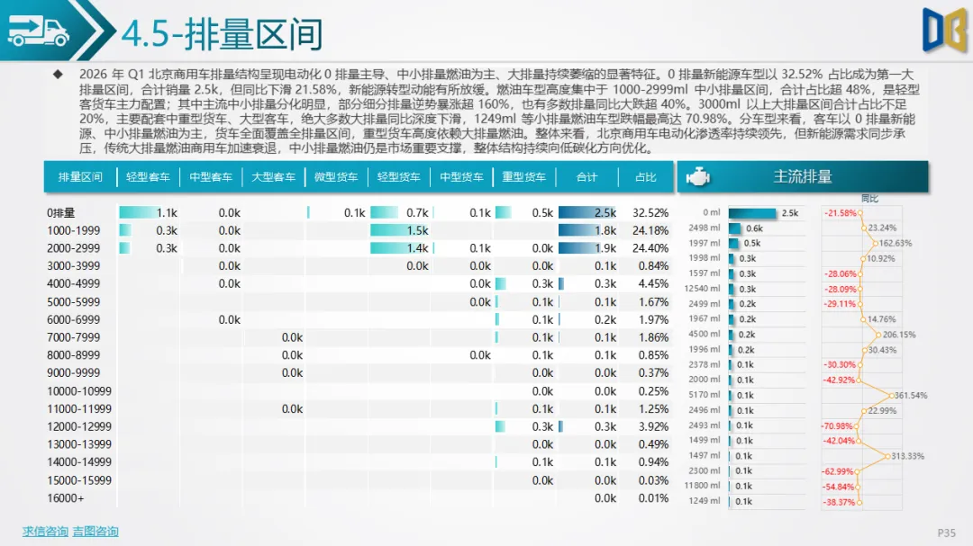区域分布高度集中,丰台区销量占比30%,同比大涨92%,东城、朝阳、西城等核心城区全面增长,远郊区县普遍大跌,需求向城市配送、城区运营集中,远郊基建货运需求疲软。